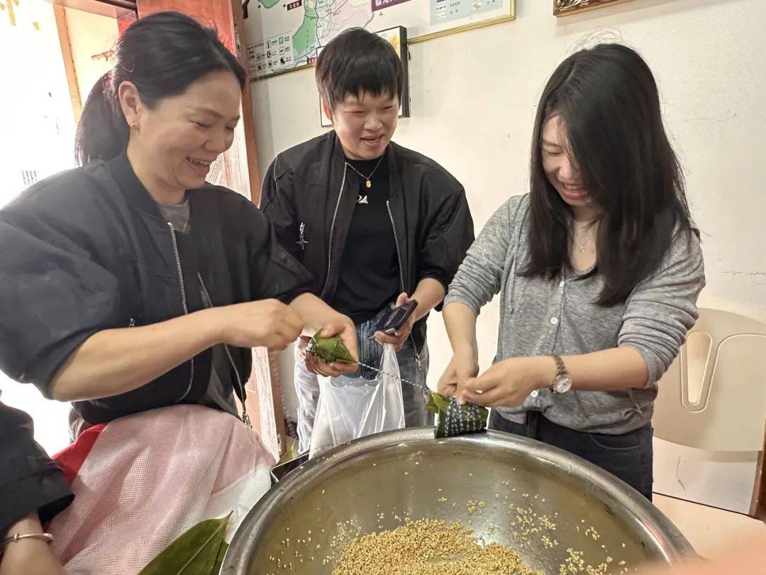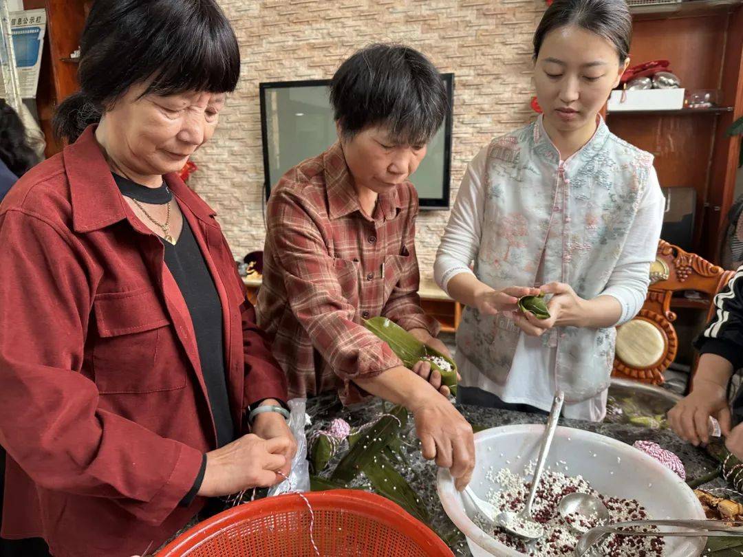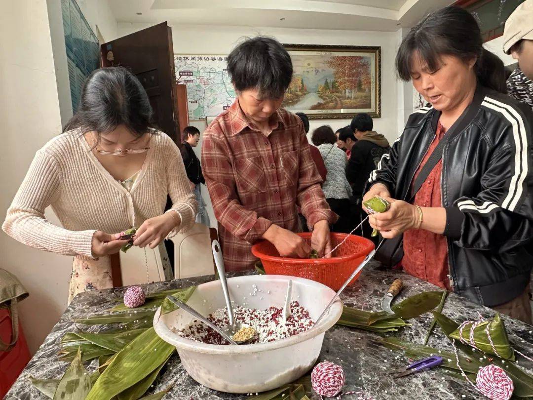 活动现场,糯米、粽叶、红枣、红豆等材料整齐码放,志愿者们和村民们围坐在一起,纷纷大显身手,捋粽叶、填糯米、封口捆扎,一双双巧手翻飞间,一个个饱满的粽子就成型了,欢声笑语此起彼伏。活动尾声,大家还自发评选出“最美粽子”“最快巧手”,为传统习俗增添了趣味与活力。