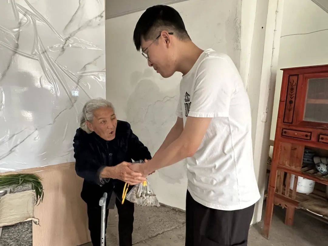 包好的粽子经过蒸煮后,志愿者们第一时间将这些带着热气与温情的粽子和艾草香包送到村内老人手中。志愿者与老人亲切交谈,询问他们的身体状况和生活需求,叮嘱老人们要注意饮食和休息。老人们接过粽子,脸上洋溢着幸福的笑容,纷纷表示感受到了节日的温暖和社会的关爱。